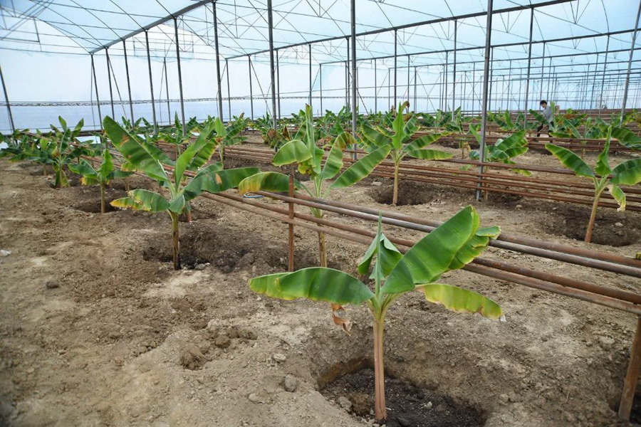 Жаңа жылыжайда банандар 0,03 гектар жерге өсіріледі. Онда тиімді басқару жүйелері енгізілген.